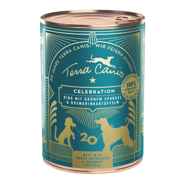 これまでの特別な瞬間、喜び、そして美味しいメニューを振り返りながら、20周年という節目となる記念にふさわしい特別な一品をお届けします。テラカニスのすべての魅力を詰め込んだ特別なアニバーサリーメニューです。「ビーフ グリーンアスパラガスとローズマリーとポテトを添えて」は、美食を愛するすべての愛犬のためのごちそう。ともに味わい、喜び、口の中でとろける美味しさを楽しむ、まさにこの20年間の輝かしい瞬間を祝うのにふさわしい一皿です。 総合栄養食ではありませんのでフードにトッピングや手作り食に合わせてお使い下さい。 [原材料] 牛肉45%(牛の心臓31%、牛の肺9%、牛の肝臓5%)、煮汁30%、じゃがいも7%、かぼちゃ5%、ビートルート4%、キュウリ2%、ブロッコリー2%、グリーンアスパラガス1%、マンゴー1%、イチゴ1%、栗の粉、ココナッツ粉、グレープシードオイル、オイスターシェル、チャービル*、パセリ*、亜麻仁、ローズマリー0.2%*、クミン*、ローズヒップピール*、ミネラルクレイ、ターメリック* *乾燥 [成分値] 租タンパク質/7.8% 租脂肪/6.8% 租繊維/0.4% 租灰分/0.9% 水分/80.4% カロリー/98kcal/100g [内容量] 400g [生産国] ドイツ